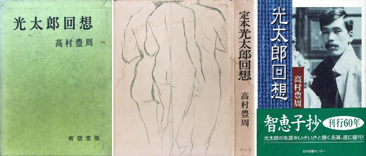 「光太郎回想」には3種類の版があります。まず、有信堂から昭和37年(1962)に刊行されたオリジナル、続いて、その全文にさらに他の光太郎に関する短文等を併せて編まれ、同じ有信堂から昭和47年(1972)に刊行された『定本光太郎回想』、そして名著の復刻的なコンセプトのシリーズ「人間叢書」のラインナップで平成12年(2000)に刊行された日本図書センター版です。