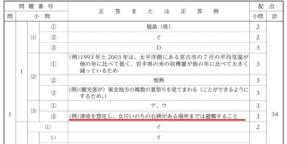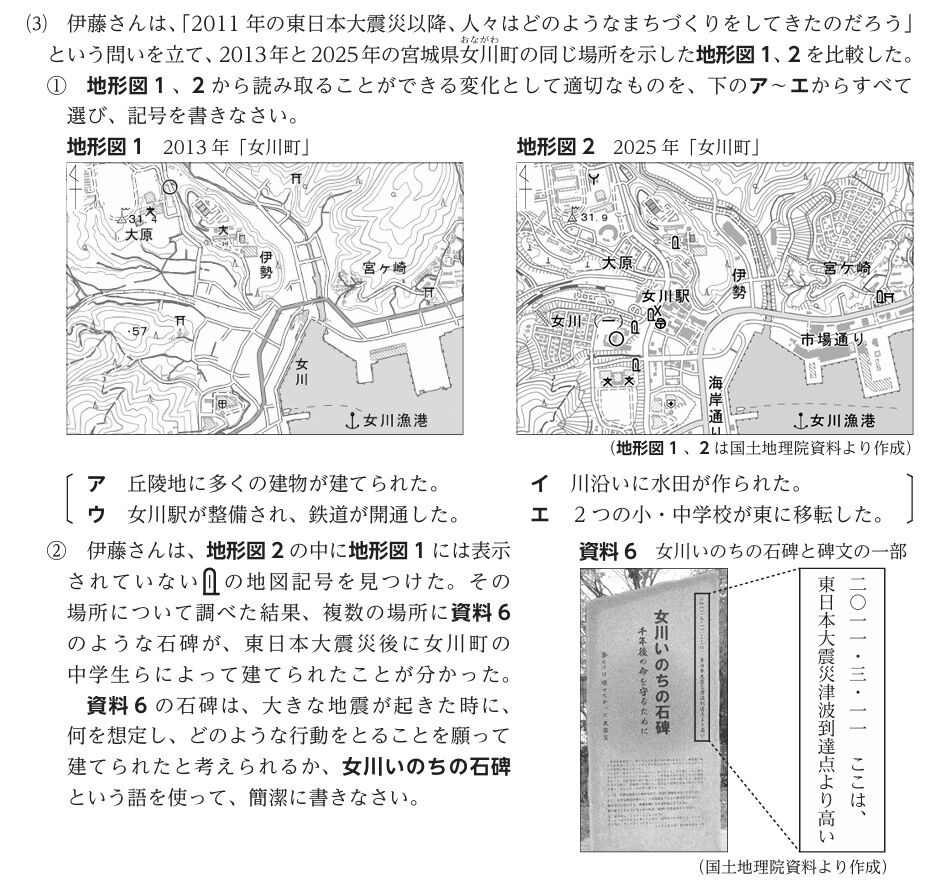 社会の地理的分野の問題ですが、こうしてみると、東日本大震災も「歴史」の一部となりつつあるかと思いました。しかし、それは風化させていいということではありませんし、福島では未だに原発事故の被害が継続中なわけで……。