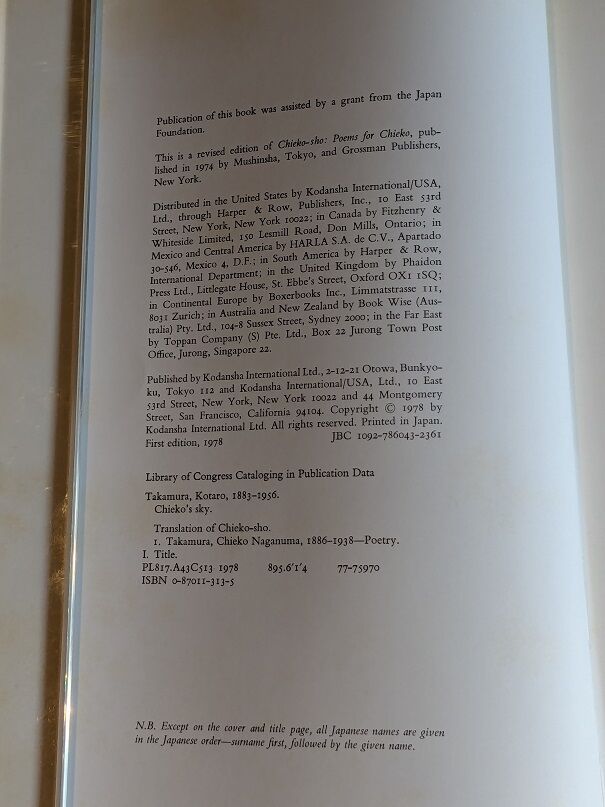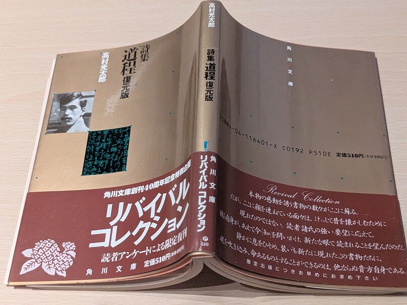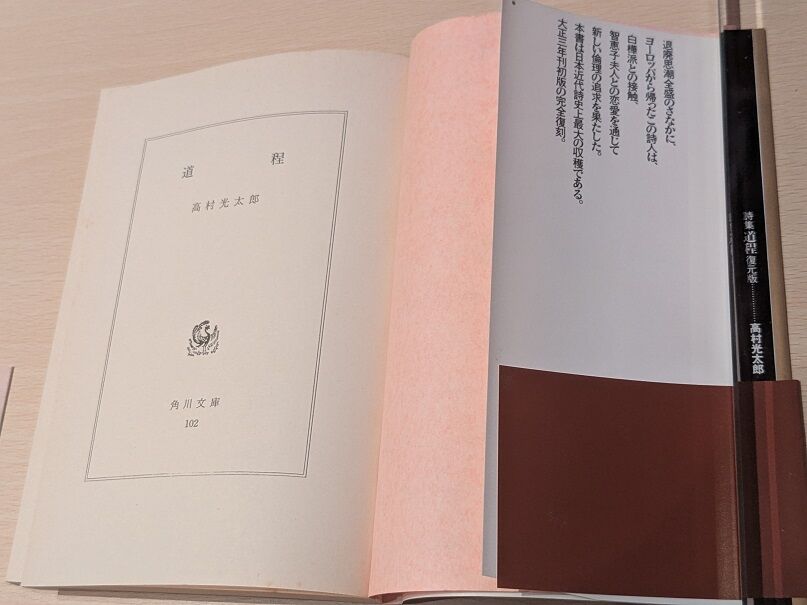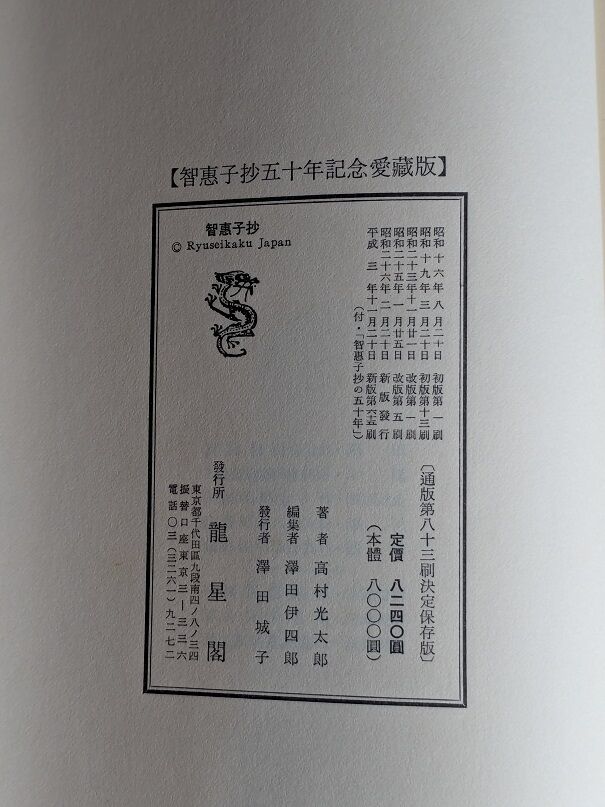 編集者附記 澤田伊四郎昭和16年(1941)にオリジナル『智恵子抄』を上梓した龍星閣では、第83刷を「五十年記念愛蔵版」として、バックラム(麻布をの生地目を浮き出して膠で固め着色したもの)装、特別な函入りで刊行しました。この他に後ほど御紹介しますが、「特装版」も出しています。