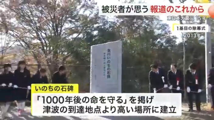 悲劇を繰り返さないために…。立ち上がったのは伊藤さんをはじめ町内の中学生でした。震災発生から1カ月後に女川第一中学校に入学した生徒たちが考えた「いのちの石碑」。1000年後の命を守るを掲げ、町内21カ所の浜の津波到達地点より高い場所に、石碑を立てるというプロジェクトです。