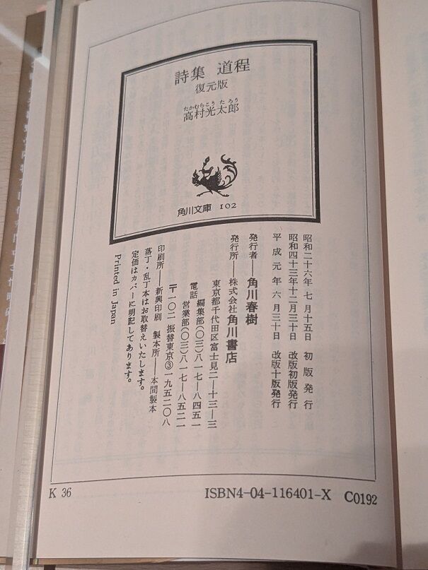 平成3年(1991)11月20日 龍星閣 高村光太郎著