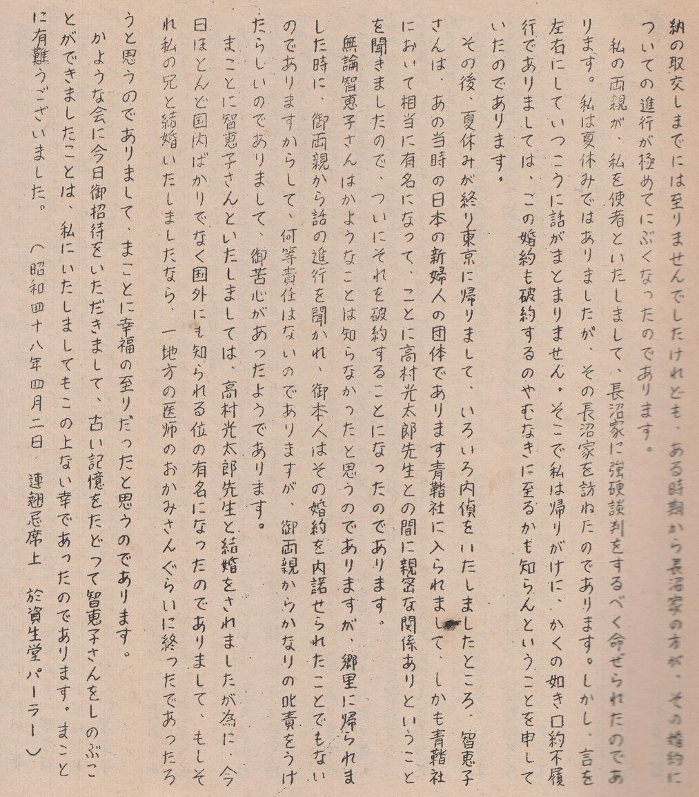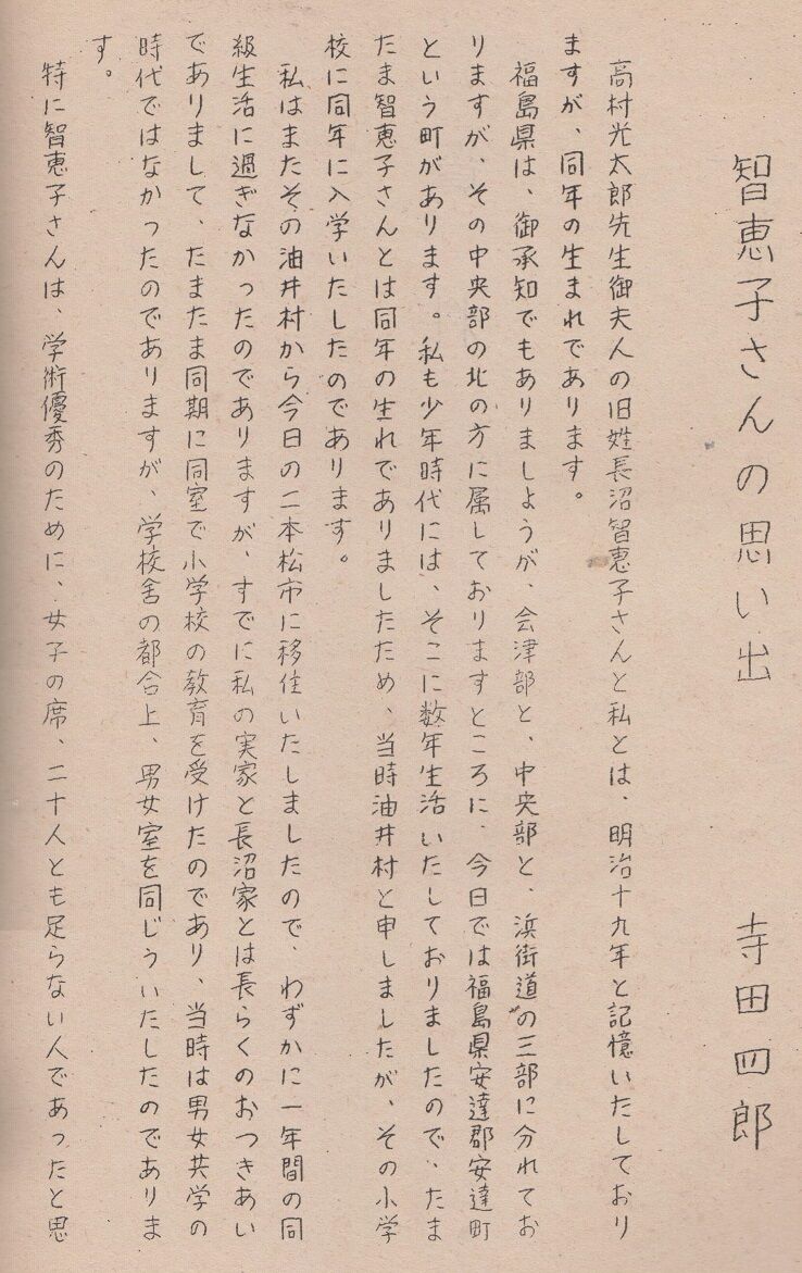 写真も添えられていましたが、不鮮明な上に、肝腎の智恵子は野上弥生子の陰に隠れ、顔がはっきり写っていませんでした。