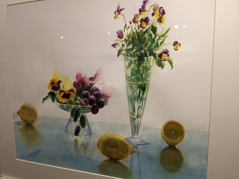 ❷青の濃淡や明暗が白っぽい筋をつくる。隣に展示されている、黄色が基調の「生の記録4」と比べても、より繊細な表現だ。