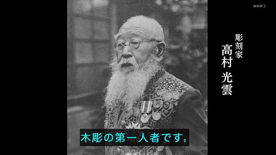 いわゆる「超絶技巧」系の展覧会で、光太郎の父・光雲の木彫が出ています。