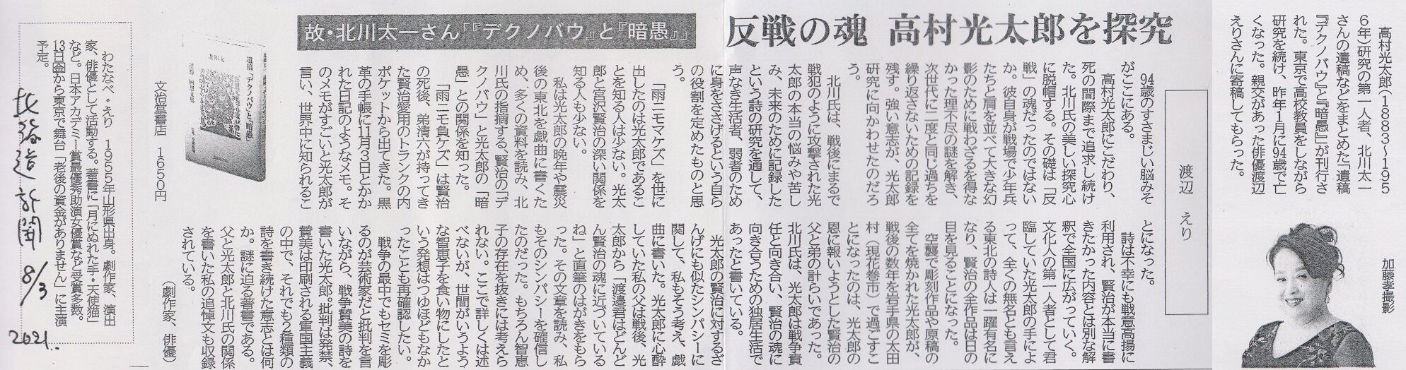 ところで、『東京新聞』さんに同書の書評的な記事が出ていました。