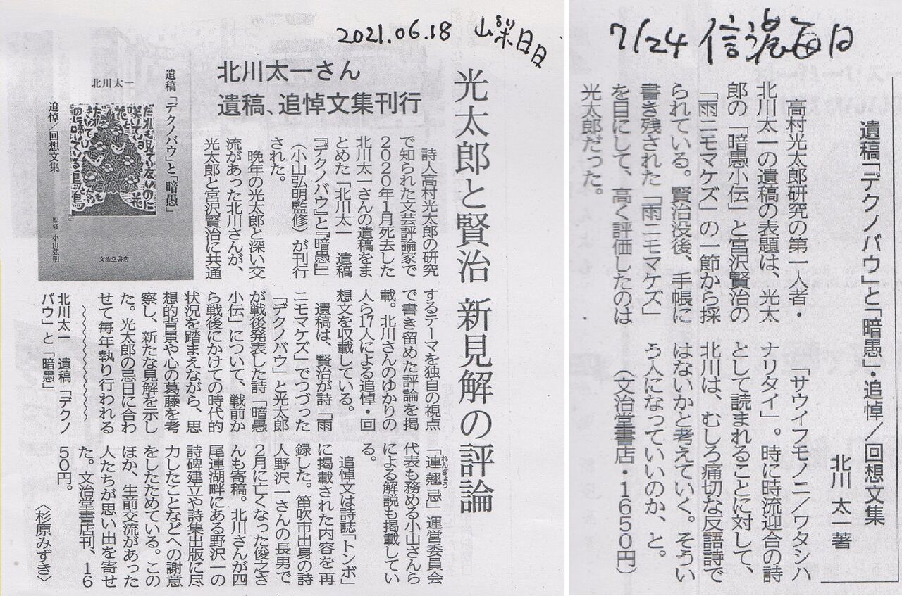 「大きなことば」で翼賛詩を書かざるを得ない立場にあった光太郎も、「小さなことば」で書かれたこのアンソロジーの本質を鋭く見抜いていることが分かります。