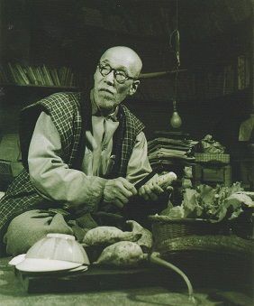 頬骨が出て、唇が厚くて、眼が三角で、名人三五郎の彫つた根付(ねつけ)の様な顔をして