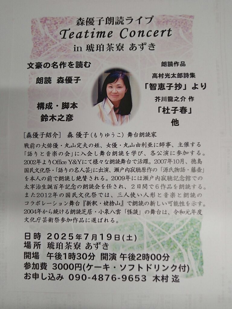 日 時 : 10月5日(土)13時〜、15時〜 各回40分程度