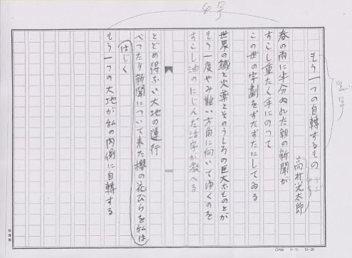 賢治といえば、光太郎、その精神や芸術的軌跡には共鳴しつつも、「雨ニモマケズ」中の「一日ニ玄米四合ト味噌ト少シノ野菜ヲタベ」の部分は承伏できない、としています。特に戦後は、酪農や肉食を勧め、体格から欧米人に負けないように、的な発言も見られました。